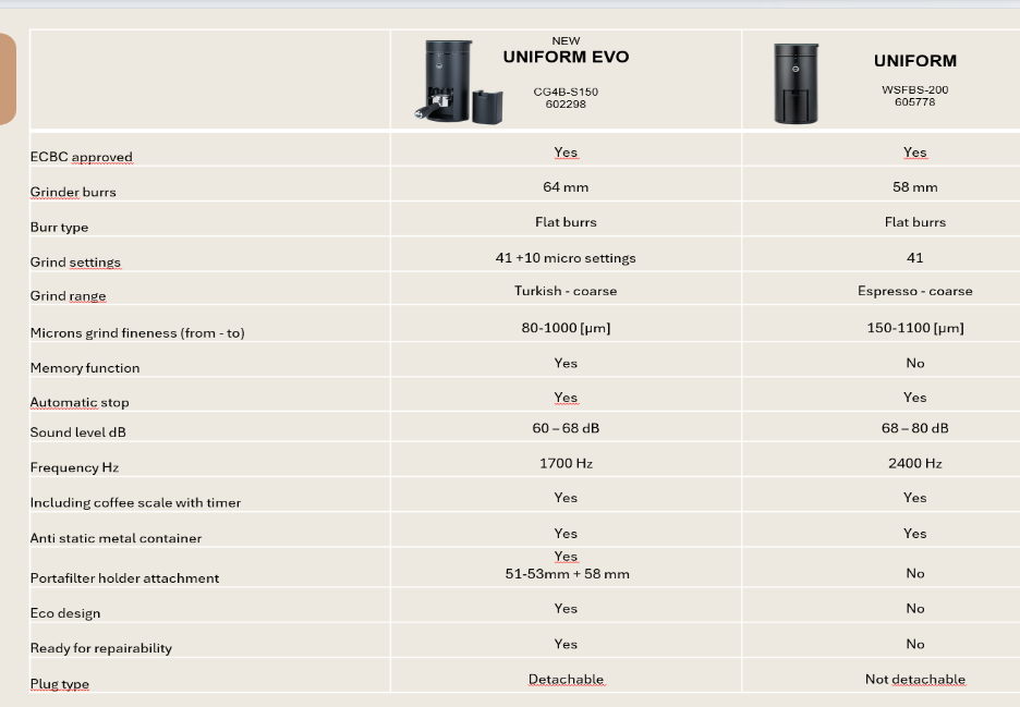 Mit eroa Uniform ja Uniform EVO kahvimyllyillä?